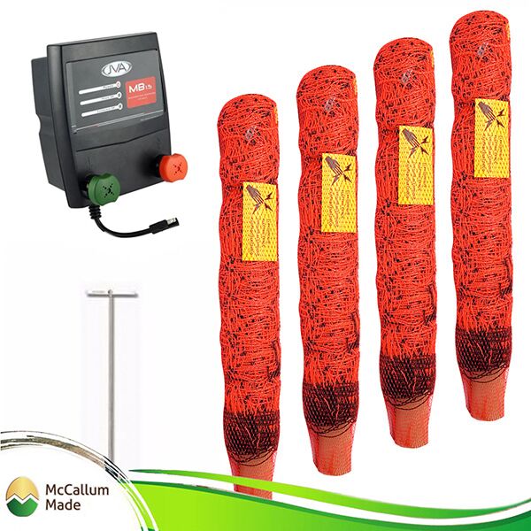 The top strand is 80% stronger than the rest of the strands to ensure your netting maintains its integrity. You can connect either or both ends of the fence to the energiser. You can likewise set the net in either a straight line or looped back to form an enclosed area. If you want to form longer runs then the fence lengths can easily be connected together. Each 50m net incorporates 14 plastic posts with steel single-prong feet, a repair kit, warning sign, 2 corner support guys to keep the fence tighter to the ground in undulating areas.